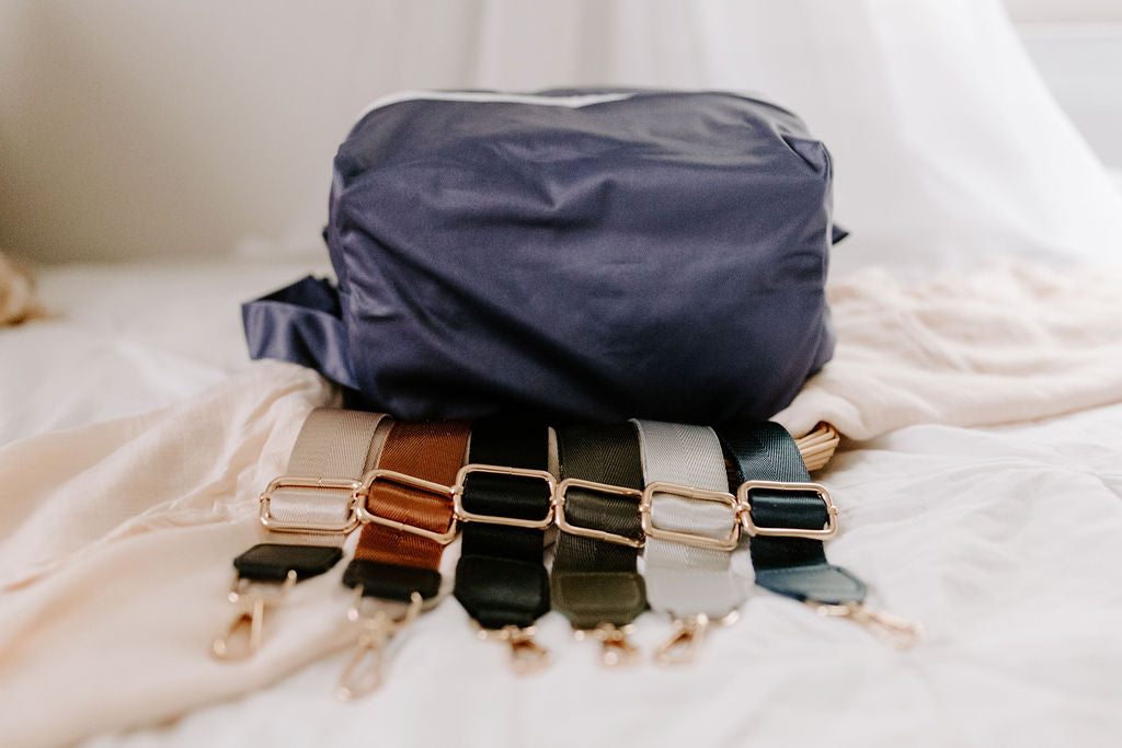 - Optional Removable Shoulder Strap Available in Black, Brown, Khaki, Navy, Silver, or Slate